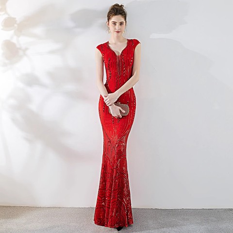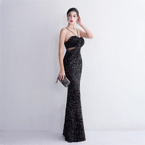 New women's formal evening dress with elegant style, long and flowing fishtail sequined dress, sexy evening gown