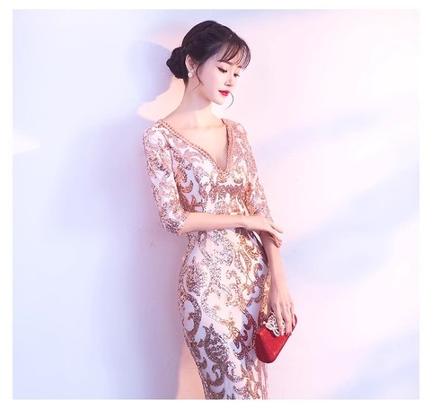 Glamorous evening dress with elegant and luxurious high-end feel. Formal long dress suitable for formal banquets.