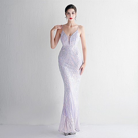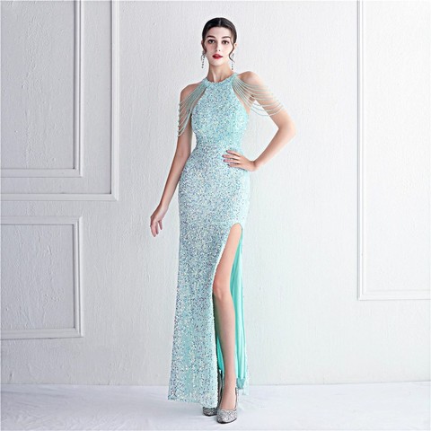 Nuovo abito da sera formale da donna con stile elegante, lungo e fluente abito con paillettes a coda di pesce, abito da sera sexy